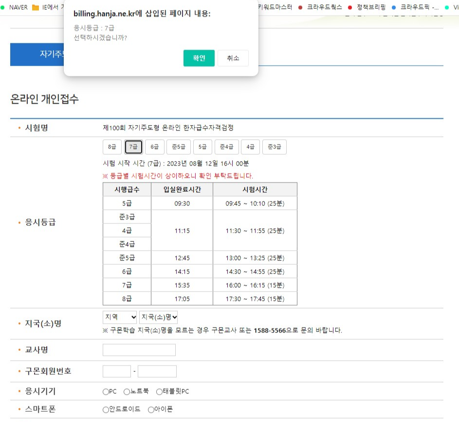 가장 낮은 단계인 8급과 7급 시험의 경우 문항수는 25문항이고, 15분 이내에 모든 문제를 풀어야 합니다.